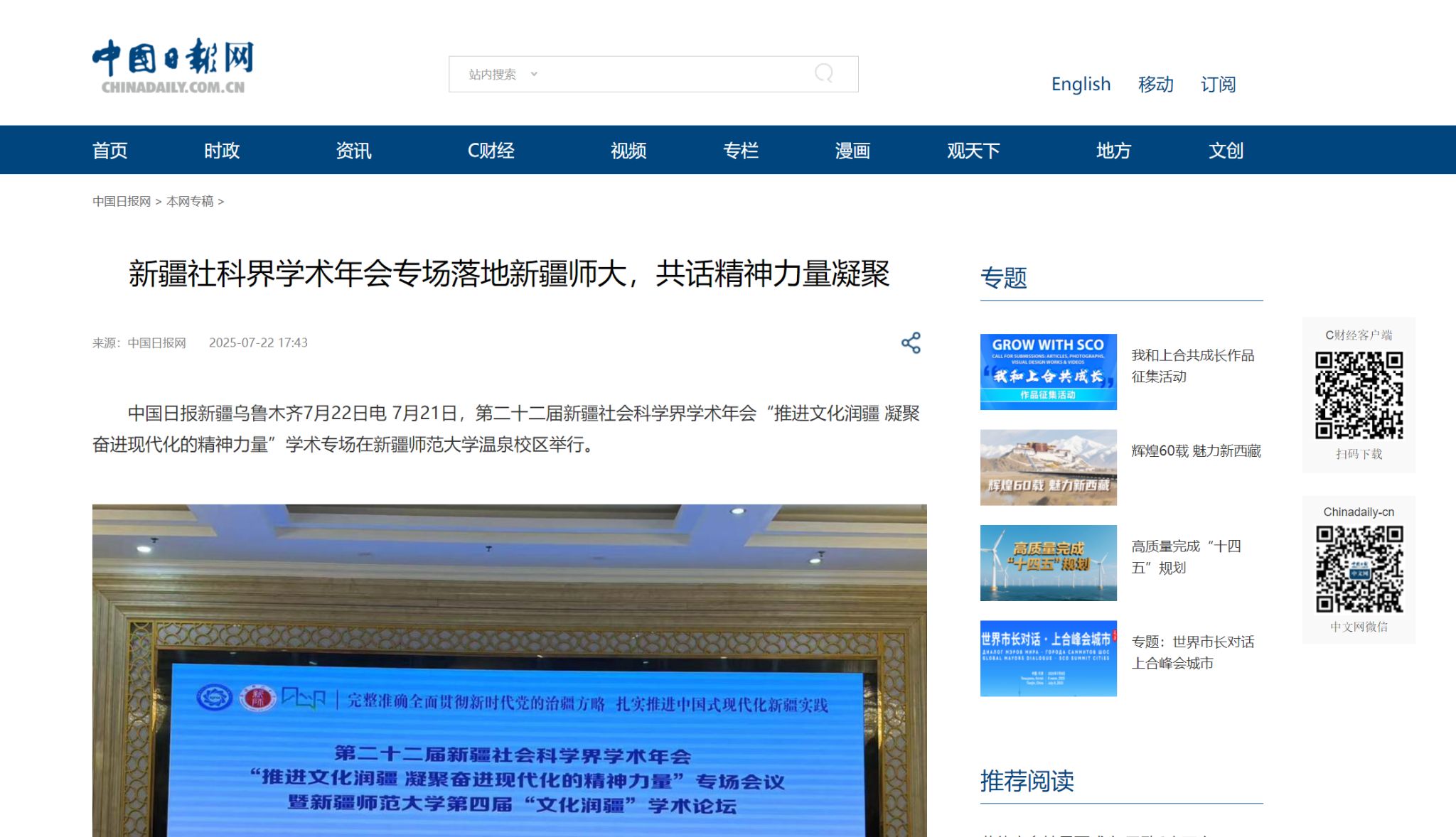 中国日报网 | 新疆社科界学术年会专场落地新疆师大,共话精神力量凝聚
