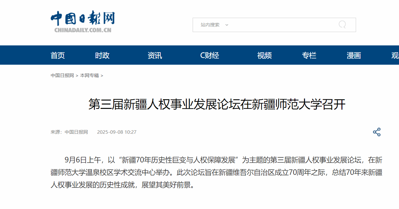 中国日报网 | 第三届新疆人权事业发展论坛在yl6809永利官网召开