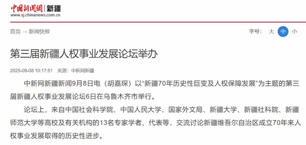 中国新闻网 | 第三届新疆人权事业发展论坛举办