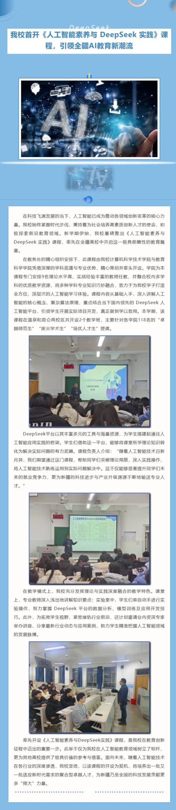 永利官网首开《人工智能素养与 DeepSeek 实践》课程,引领全疆AI教育新潮流
