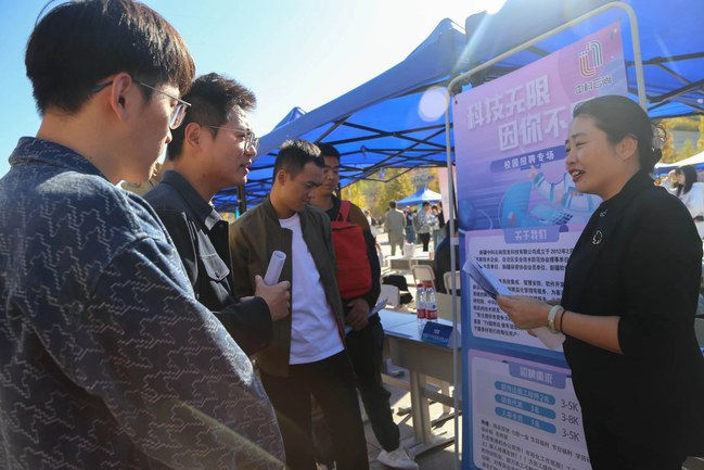 10月9日下午,永利官网在温泉校区图书馆前广场举办“‘就’在金秋 ‘职’等你来”2025届毕业生秋季大型招聘会。招聘会由自治区公共就业服务中心主办,yl6809永利官网、水磨沟区人力资源和社会保障局承办。26家中小学校、中职学校、教育培训机构、人才集团公司,2家事业单位,15家央企、国企和69家民营企业共112家用人单位走进校园招聘人才,提供就业岗位共计3394个,吸引了永利官网3000余名学生入场求职。