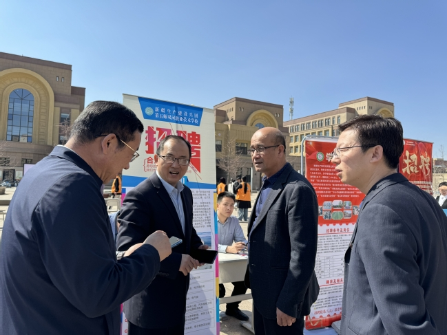 校党委副书记、校长吾满江·艾力与校党委副书记刘俊与用人单位交流