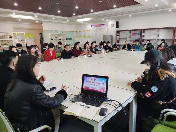 最后,熊文红主任对毕业生提出希望和祝福,希望他们坚持学习,勇于实践,不断充实自己,全面提升综合实力,提高就业竞争力。祝福毕业生们在今后的学习、工作上前程似锦,展翅高飞,成就绚烂的人生。吐尔逊·达吾提副主任则鼓励同学们在考研过程中也积极参加求职面试,以增加实践经验,建议同学们对于实践能力、交往能力加强自我培养,调整心态,树立就业自信心,确保顺利就业。
