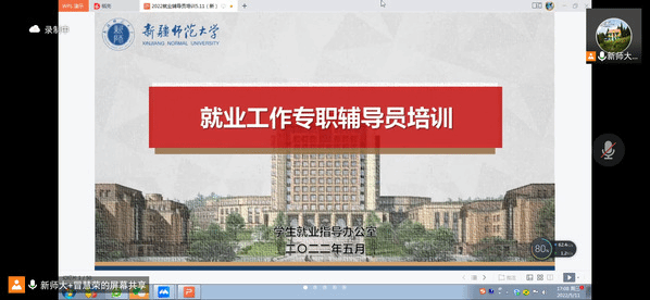 学生就业指导办公室就业指导服务科科长冒慧荣分别从国家、自治区、学校层面对《2022年就业形势与政策》进行了客观分析和详细解读,对“就业统计与核查工作”、“新疆公共就业服务系统”“全国高校毕业生管理系统”的数据录入和信息维护、国家24365大学生就业服务平台的使用和网签系统做了详细说明,并在线逐项进行了演示。学生就业指导办公室市场信息科科长王一洁对近期开展的24365校园专场招聘活动做了介绍,着重对访企拓岗专项行动、宏志助航计划、职在新疆活动、就业促进周和“百日冲刺”活动进行了宣传,并对活动的开展提出了相关要求。