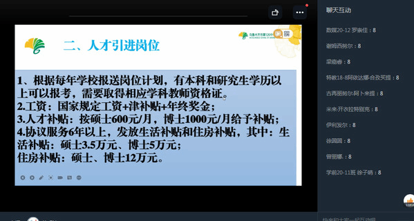 为做好2022届毕业生的求职工作,促进师范生增强应聘中小学教师的信心,引导毕业生充分了解中小学现状及就业岗位,2月12日-2月14日,学生就业指导办公室开展为期3天的5场线上教师类专题培训讲座。本次讲座特邀乌鲁木齐八一中学、乌鲁木齐市第126中学、乌鲁木齐市第1小学、乌鲁木齐市第39小学、乌鲁木齐市第64小学的相关领导及负责人为各专题主讲人。在全校各学院领导和辅导员积极宣传下,共有1744名毕业生参训。