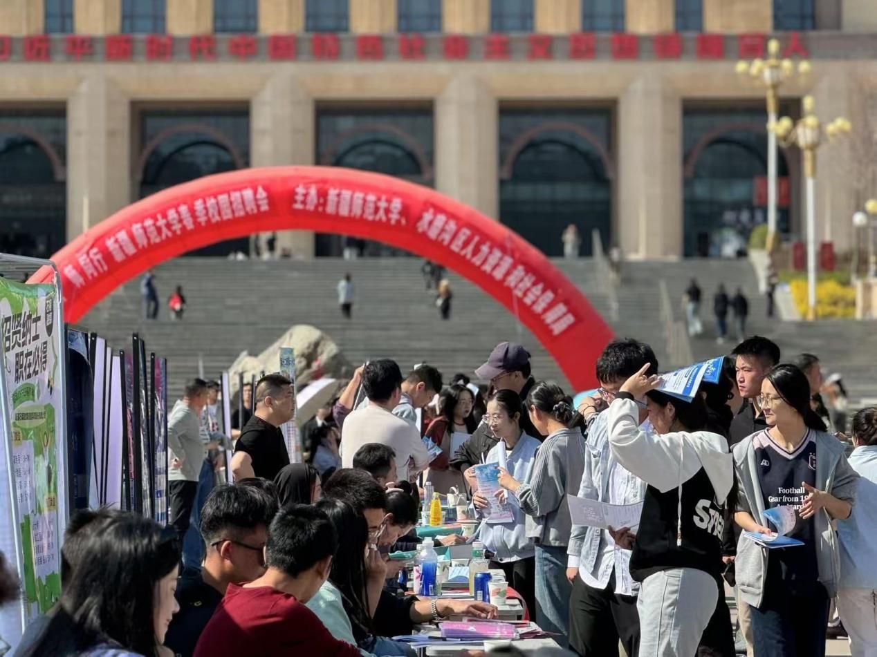 4月23日,永利官网“‘暖’春送岗 ‘新’师同行”春季校园招聘会在温泉校区举办,56家企业和中小学校进校园招聘,提供就业岗位604个,1000余名毕业生入场求职。