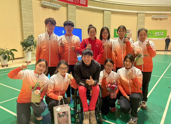 “我有幸与坐姿组滑雪项目的冠军得主合影,他是一位与我们同龄的阳光大男孩儿,但右腿的缺失却无声地诉说着他曾经历过的磨难。他用自己的汗水和毅力,战胜了身体的缺陷,站在了最高的领奖台上,向世界证明了生命的顽强和运动的魅力。”志愿者、2023级本科生皮唐详同学说。