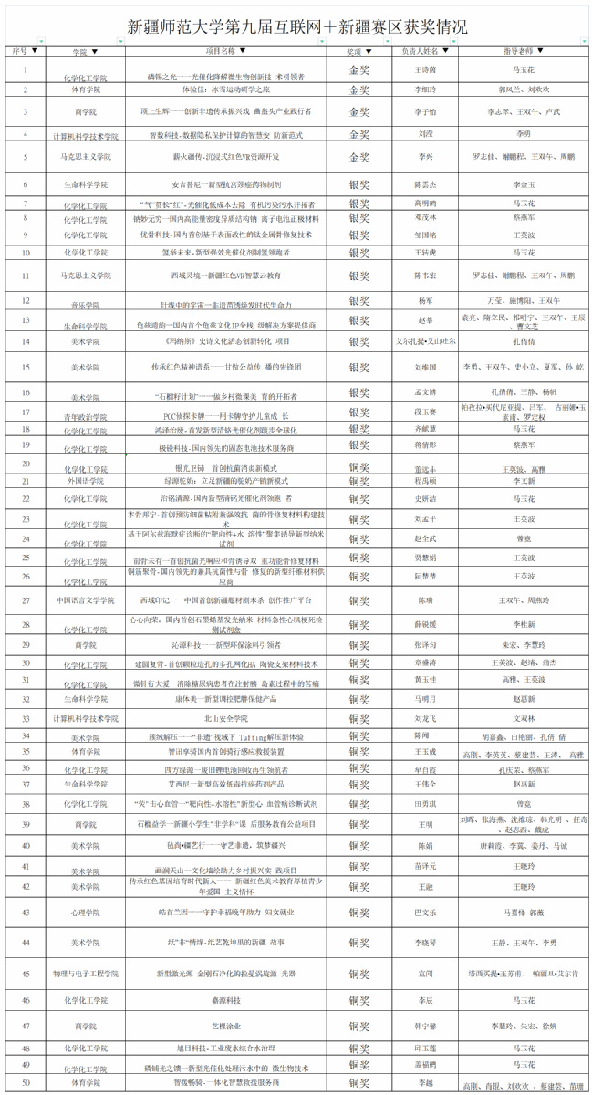 8月15日至17日,第九届中国国际“互联网+”大学生创新创业大赛新疆赛区决赛在新疆大学举行。经过校赛选拔、区赛复赛,永利官网共有53个项目进入新疆赛区决赛,经过激烈角逐,斩获金奖5项、银奖14项、铜奖31项,获奖总数再创新高,金银牌总数位列全疆第二。