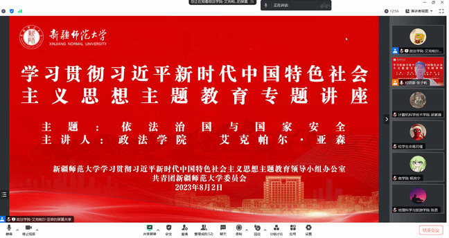 青年学子宣讲团成员、政法学院2021级民商法学专业硕士研究生艾克帕尔·亚森结合自身专业学习,以《依法治国与国家安全》为题,从“国家治理”“中国式现代化”“民族复兴”“维护国家安全”等关键词展开讲座,以青年视角向大家阐释了全面依法治国是国家治理领域一场广泛而深刻的革命,是实现国家治理能力现代化、建设现代法治国家的本质要求和重要保障,激励同学们认真践行习近平法治思想,弘扬社会主义核心价值观,自觉尊崇法治、敬仰法治、守护法治,敢于担当作为,在中华民族伟大复兴中国梦的新征程中,奋力书写无悔的青春华章。