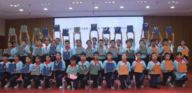 为夏令营学生代表发放纪念品