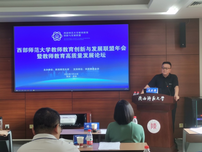 7月24日,西部师范大学教师教育创新与发展联盟年会及以“振兴西部教师教育,服务教育强国建设”为主题的教师教育高质量发展论坛开幕式在陕西师范大学长安校区召开,19所联盟院校代表和陕西教师教育创新与发展联盟的10所院校代表参加,教育部教师工作司副司长黄小华、陕西省教育厅副厅长王海波出席开幕式并讲话。