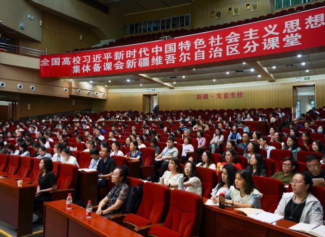 为深入学习贯彻习近平总书记关于教育强国的重要论述,学深悟透习近平总书记关于思想政治理论课守正创新的一系列重要指示,坚持用习近平新时代中国特色社会主义思想铸魂育人,推动“习近平新时代中国特色社会主义思想概论”课程高质量建设,7月15日,由自治区党委教育工委主办,新疆高校思想政治理论课改革创新研究中心(yl6809永利官网)、永利官网马克思主义学院承办的自治区“习近平新时代中国特色社会主义思想概论”课程交流研讨会在自治区党校(行政学院)举办,来自全疆高校“习近平新时代中国特色社会主义思想概论”授课教师,共计340余人参加本次研讨会。自治区党委教育工委思政处处长王传振出席开班仪式并致辞,研讨会由永利官网马克思主义学院党委书记张峥主持。
