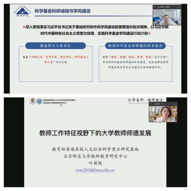 学习期间,永利官网特邀国家自然科学基金委员会科研诚信建设办公室学风建设处处长陈克勋博士、北京师范大学教师教育研究中心叶菊艳博士作专题讲座。陈克勋博士以《科学基金学风和科研诚信与伦理建设》为题,从教育、激励、规范、监督和惩戒五个方面深入系统地阐述了科学基金学风建设的重要性及科研诚信与伦理建设的必要性。叶菊艳博士以《教师工作特征视野下的大学教师师德发展》为题,结合社会学、教育学、教师教育及高校学术职业等领域研究,详细介绍大学教师工作的特征,阐明大学教师师德师风建设关乎立德树人根本任务落实,在教育过程中对学生道德品质发展的重要引领示范作用,并提出教师师德发展的方向和路径。