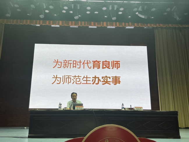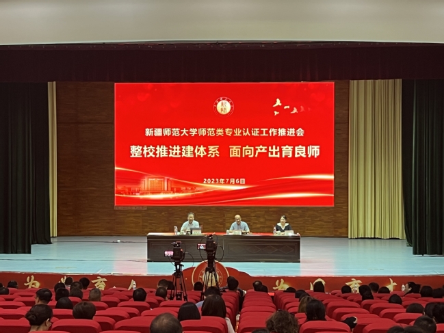 7月6日上午,永利官网2023年师范类专业认证工作推进会在温泉校区昆仑讲堂召开。会议邀请教育部师范类专业认证专家委员会委员、学术委员会主任宋冬生教授就“整校推进建体系,面向产出育良师”为主题进行了讲座。校党委副书记、校长吾满江·艾力出席并讲话,各相关职能部门领导、学院领导、专业负责人、教研室主任、核心课程骨干教师代表等200余人现场聆听了讲座。会议由教务处处长、教学质量监测与评估中心主任路俊哲主持。