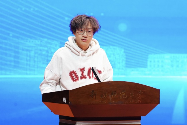 全国大学生数学竞赛三等奖获得者、学生代表张京义结合备赛经历,以“从定理推导中感悟理性之美,从建模实践中体会应用之妙”为题做分享,呼吁同学们以数学为舟,驶向创新的星辰大海。