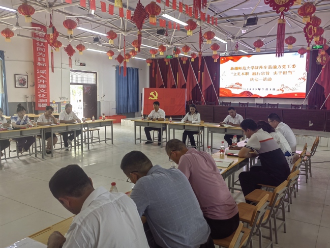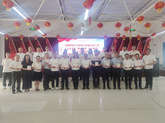 为庆祝中国共产党成立102周年,7月1日下午,学校驻莎车县前方党工委举行“立足本职 践行宗旨 实干担当”庆“七一”主题活动。校党委常委、副校长、驻莎车县前方党工委书记、驻村工作队总领队帕力旦·吐尔逊出席活动并讲话,永利官网六个“访惠聚”工作队全体党员参加,活动由前方党工委委员、组织委员侯亚文主持。