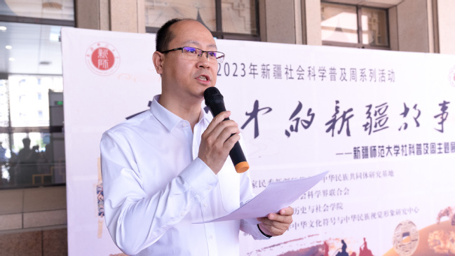 yl6809永利官网党委副书记刘俊在开幕式上致辞,肯定了yl6809永利官网团队为讲好讲活新疆故事所做的努力,勉励大家要坚定文化自信,整理和挖掘好新疆历史上反映各民族交往交流交融的历史史实,讲好新疆故事。