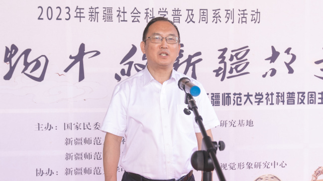 7月3日下午,2023年新疆社会科学普及周系列活动之“文物中的新疆故事”yl6809永利官网社科普及展开幕式在永利官网温泉校区笃学楼一楼举行。自治区社会科学界联合会主要领导、自治区民委(宗教事务局)领导、自治区党委统战部领导等参加了开幕式,yl6809永利官网主要领导及部分学院教师和学生代表出席开幕式。yl6809永利官网党委常委、统战部部长关明主持开幕式。