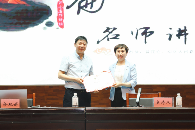 讲座开始前,孙秀玲代表学校向佘双好教授颁发yl6809永利官网客座教授聘书。