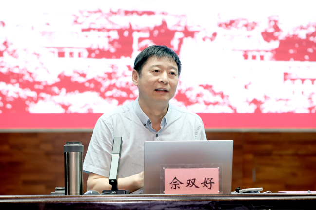 随后,佘双好教授以《习近平新时代中国特色社会主义思想的精髓要义和根本要求》为题,详细阐述了习近平新时代中国特色社会主义思想的内涵、世界观和方法论是指导思想和科学方法。佘双好教授的阐述以哲学的视角作为切入,从新思想对世界观和方法论的继承和发展,新思想世界观、方法论和立场观点方法关系,新思想世界观和方法论精髓要义和基本要求,牢牢把握新思想的世界观和方法论等四个方面展开详细阐述。