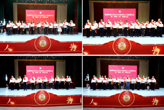 大会在庄严的国歌声中拉开帷幕。在全校师生党员的见证下,校领导、基层党组织老党员代表为102名新入党党员代表佩戴党员徽章。在领誓人葛国的带领下,全体师生党员面向鲜红的党旗,右手握拳齐肩举起,铮铮誓言掷地有声,表达了对党的崇高信仰与无限忠诚以及为党的事业奋斗终身的坚定决心。