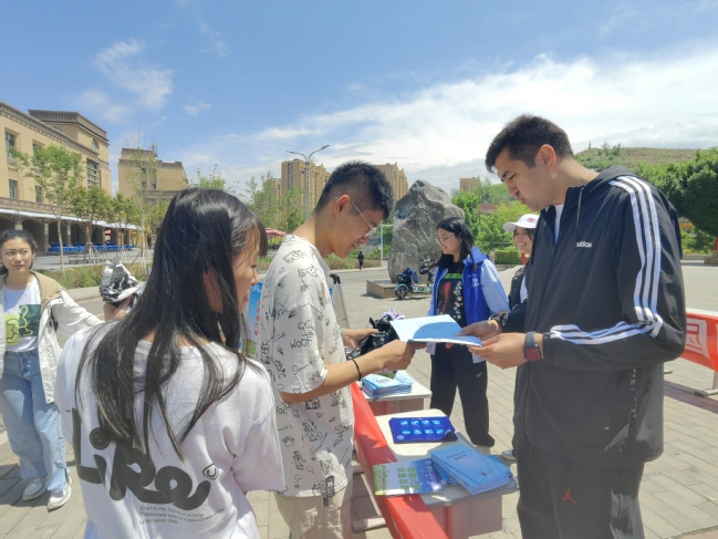 自治区人防科技协会为师生发放了防灾减灾知识宣传手册,讲解了在灾难来临时如何自救与互救。保卫处工作人员协同三校区派出所,对师生进行了防范电信网络诈骗知识宣讲,并发放反诈宣传单500余份。后勤服务中心工作人员对师生讲解了灭火器的正确使用方法。