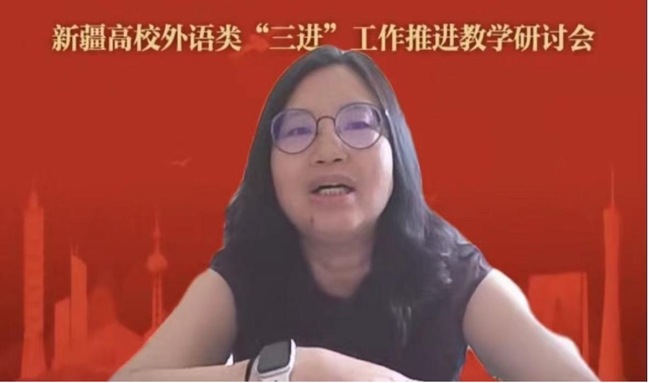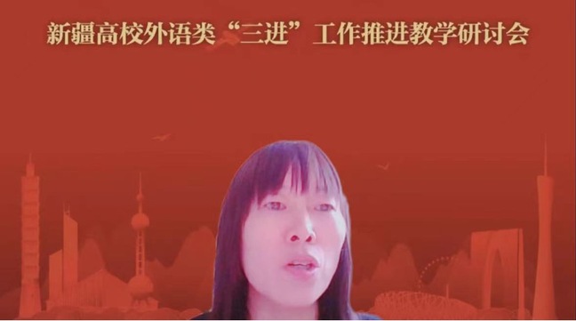 在院校交流环节,yl6809永利官网外国语学院教师索菲娅·范、燕姣,石河子大学外国语学院教师阿伊努尔,喀什大学外国语学院党委书记陈国静、教师舒进艳,新疆第二医学院语言文化部主任叶婧、教师崔倩倩分别展示了本校基于“理解当代中国”系列教材进行教学实践、创新教学改革的优秀成果,展现了各高校在推进落实“三进”工作、深化课程思政建设、创新人才培养方面所作的不懈努力。