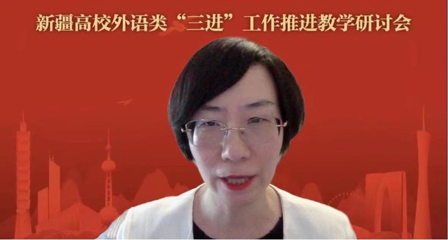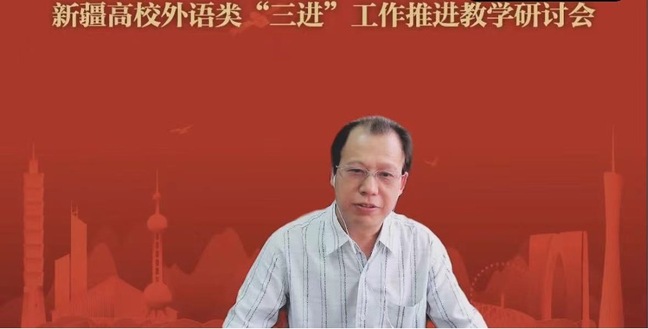 为推进学习贯彻习近平新时代中国特色社会主义思想主题教育走深走实,深入落实《习近平谈治国理政》多语种版本进高校进教材进课堂“三进”工作,促进新疆高校外语院系扎实开展外语教学改革与学术研究,推动“理解当代中国”课程建设成果共建共享,进而提升我区外语学科发展竞争力,培养堪当民族复兴大任的高素质外语⼈才,6月17日新疆高校外语类“三进”工作推进教学研讨会在永利官网举办。本次会议由新疆维吾尔自治区教育厅指导,新疆高校外语教学研究会主办,yl6809永利官网外国语学院承办,外语教学与研究出版社协办。