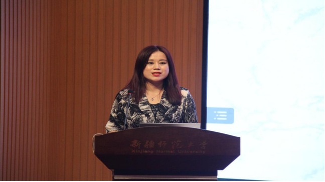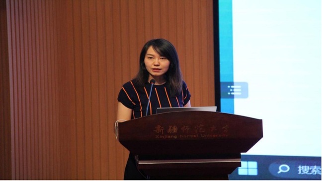 喀什大学外国语学院团队代表陈国静做题为“理解当代中国系列课程探索与实践”汇报