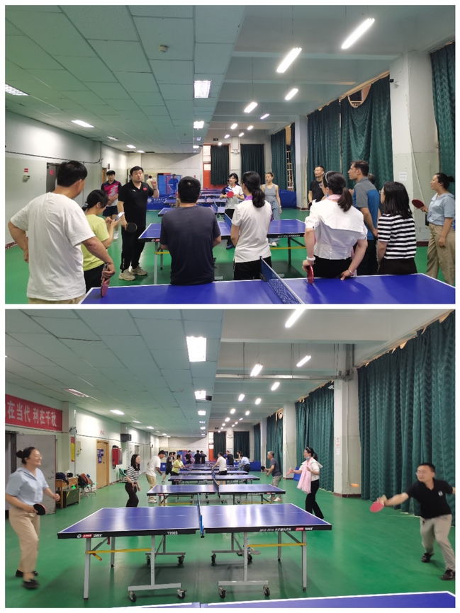 6月14日、15日晚,乒乓球兴趣提升训练营分别在昆仑校区体育馆乒乓球馆、温泉校区2号教学楼负一层乒乓球训练场开班,26名教职工参加训练。课程中,教练将理论与实践相结合,对老师们进行个性化指导,对初学者从握拍、发球、接球姿势等方面矫正指导;对有基础的学员从搓、抽、杀球、正反手攻球等动作技巧以及步法配合等方面给予点拨指导。