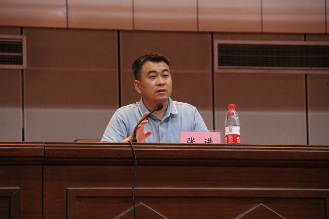 体育学院党委书记高刚宣读第十七届中国大学生跆拳道锦标赛和2023年自治区大中学生“天盛杯”武术校园比赛暨选拔赛获奖运动员名单