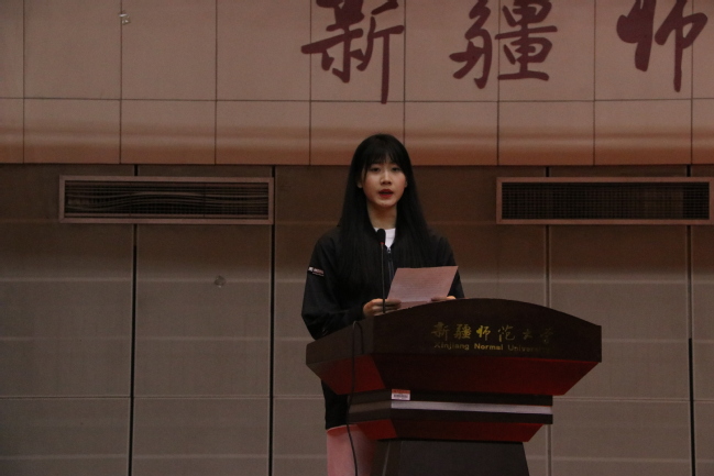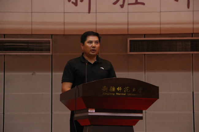 在表彰环节,校党委书记葛国、党委副书记王志勇、党委副书记刘俊以及出席会议的领导分别对取得优异成绩的运动员进行表彰颁奖,教练员代表阿布都克依木·阿布都热合曼、运动员代表张乐发言。