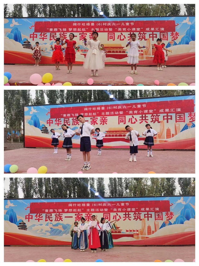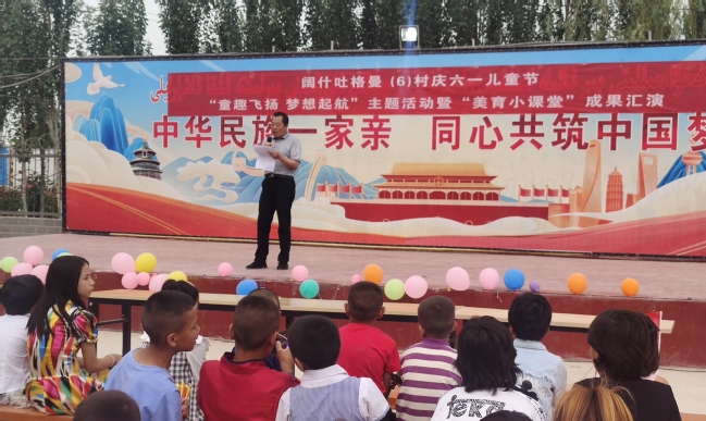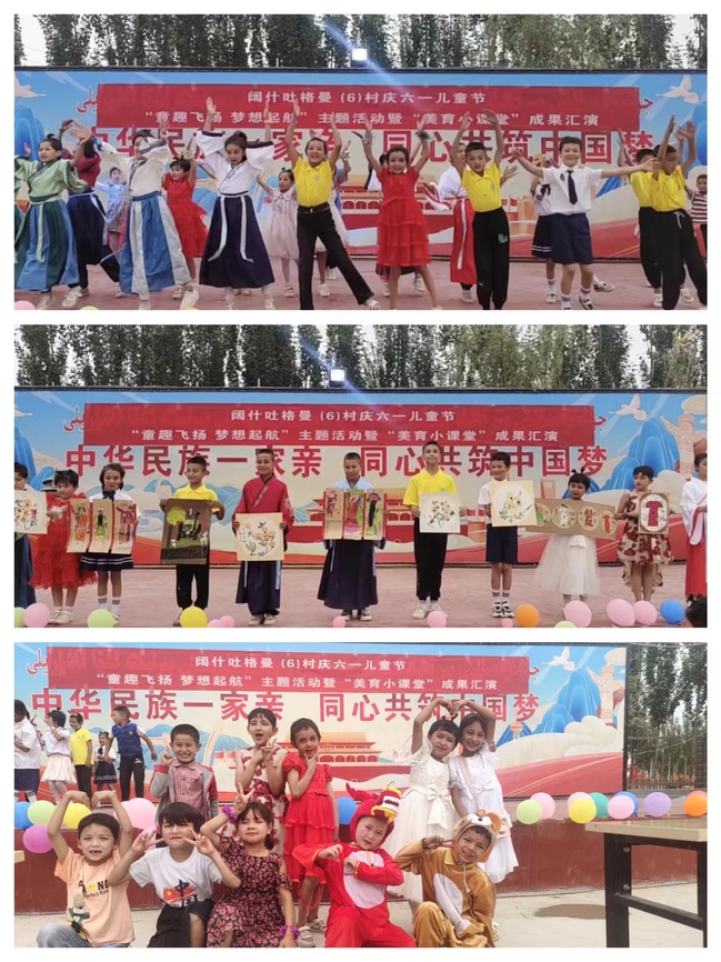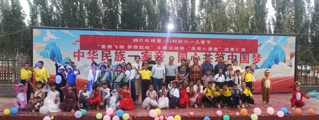 为深入推进学习贯彻习近平新时代中国特色社会主义思想主题教育走深走实,6月3日,永利官网驻亚喀艾日克乡阔什吐格曼(6)村工作队举办了“飞扬童趣 梦想启航—— 美育小课堂”汇报演出。工作队与永利官网实习学生共同编排的16个节目参加演出,共计47名小朋友参演。