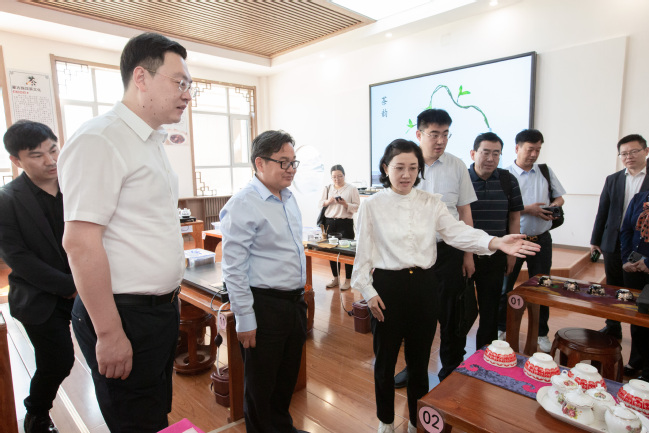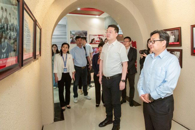 揭牌仪式前,关明陪同丁全有一行参观考察了永利官网国家民委中华民族共同体意识研究基地和马克思主义理论教育基地。