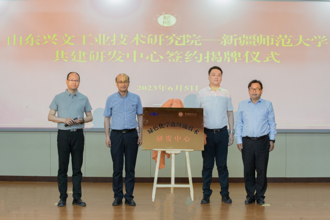 6月5日,yl6809永利官网与山东兴文工业技术研究院共建绿色化学连续流技术研发中心揭牌仪式在yl6809永利官网隆重举行。yl6809永利官网党委副书记、校长吾满江·艾力,山东兴文工业技术研究院院长丁全有,山东威海市文登区委常委、组织部部长、统战部部长周佳俊出席揭牌仪式。校党委常委、统战部部长关明主持会议。计算机科学技术学院、化学化工学院、生命科学学院、商学院、人事处、科研处等有关负责同志参加会议。