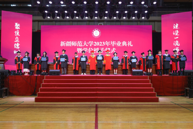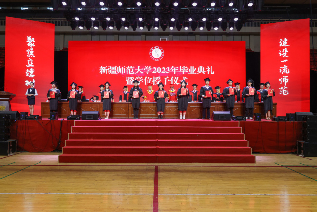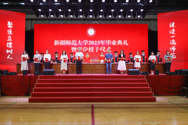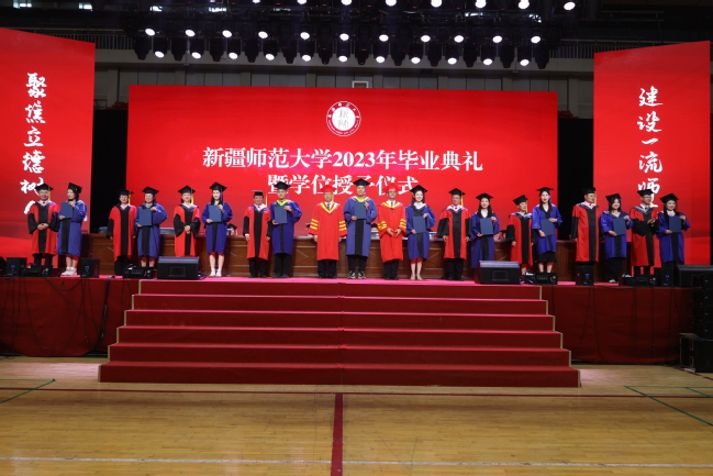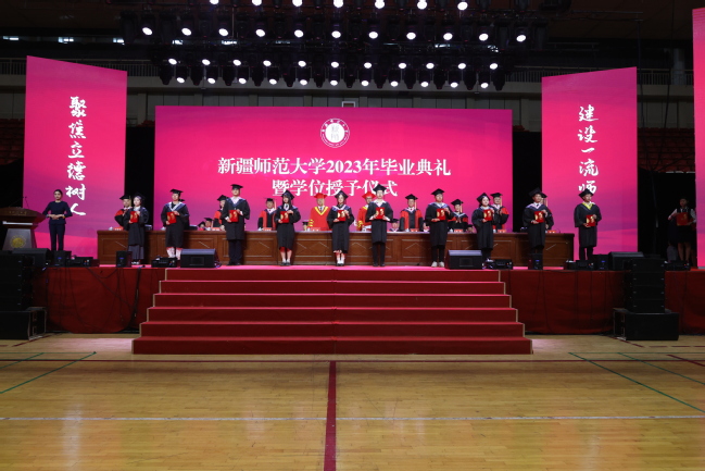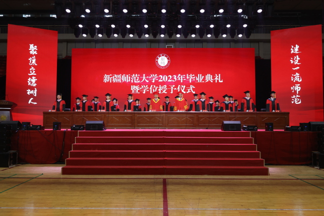 6月7日下午,永利官网2023年毕业典礼暨学位授予仪式在永利官网昆仑校区体育馆隆重举行。校党委书记葛国,党委副书记、校长吾满江·艾力,党委副书记王志勇,党委副书记刘俊,党委常委、副校长帕提曼·吐尔逊,党委常委、副校长季荣,党委常委、纪委书记蒋方珍,党委常委、宣传部部长高靖,党委常委、组织部部长胡毅涛,党委常委、统战部部长关明出席典礼,学校学位委员会委员、相关职能部门领导、各学院领导、硕博导师代表、辅导员和学业班主任代表、2023届全体毕业生参加典礼。典礼由党委副书记、校长吾满江·艾力主持。