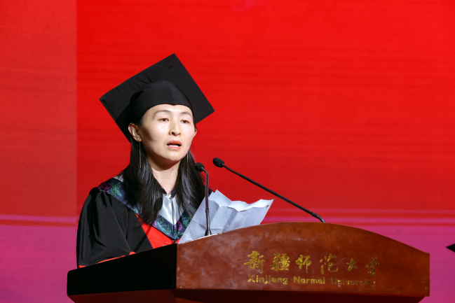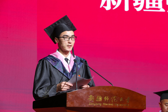 化学化工学院分析化学方向博士研究生米芳、音乐学院音乐学19-2班阿布力克木·阿布都赛麦提作为毕业生代表发言,回顾了各自求学的感悟和收获,表达了对母校的感恩和眷恋。