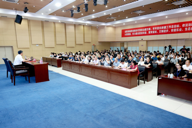 为深入推进学习贯彻习近平新时代中国特色社会主义思想主题教育,6月9日上午,永利官网“昆仑名师讲坛”第一百四十八讲暨学习贯彻习近平新时代中国特色社会主义思想主题教育集中学习在昆仑校区国际教育大厦一楼报告厅举办。本次讲坛特邀中国科学院地理科学与资源研究所方创琳研究员作主题讲座。校党委常委、副校长帕提曼·吐尔逊出席并主持讲座,各学院处级干部、自治区高级研修班学员、智库负责人以及地理科学与旅游学院领导班子和师生代表等200余名师生聆听讲座。