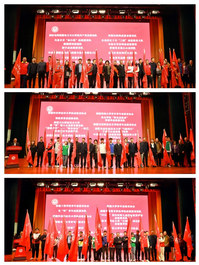 启动仪式上,与会领导为来自各行各业的43支青年志愿服务队代表授旗。各志愿服务队将以旗帜为指引,以使命为动力,积极开展丰富多彩、富有成效的志愿服务活动,在天山南北奏响志愿服务的时代强音。