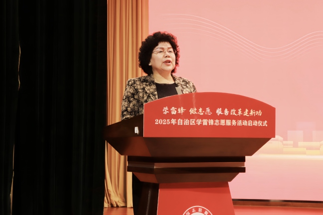 自治区党委社会工作部副部长、新疆志愿服务联合会会长祖丽比亚·依沙克讲话