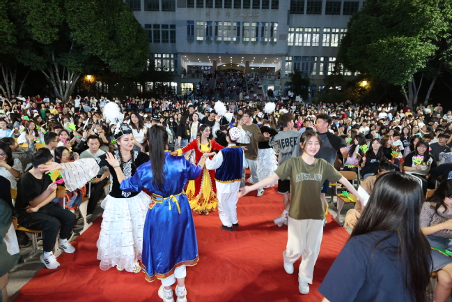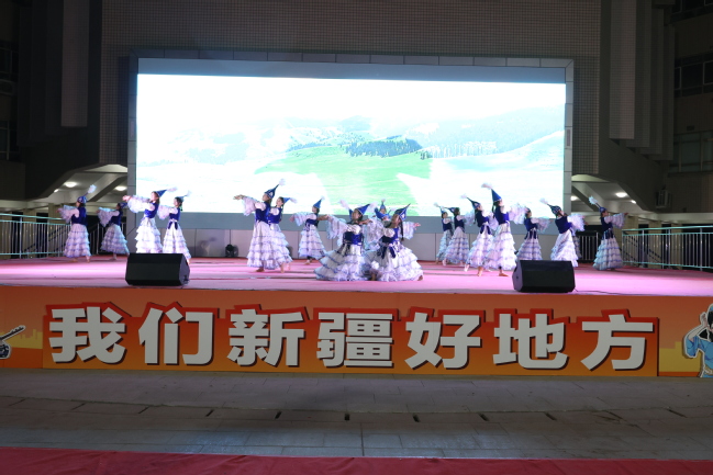 歌寄情长,舞显疆韵。歌曲《在那遥远的地方》《故乡》《可可托海的牧羊人》《草原之夜》《2002年的第一场雪》《怀念战友》深情的演唱,诉说着毕业生对母校的眷恋与不舍;《掀起你的盖头来》《巴郎仔》则展现了永利官网广大青年学子的青春与活力;舞蹈串烧《青春舞曲》、维吾尔族舞蹈《葡萄架下的篝火》、哈萨克族舞蹈《黑走马》、蒙古族舞蹈《额尔古纳河》、塔吉克族舞蹈《帕米尔之情》则充分彰显了“中华民族一家亲,同心共筑中国梦”的浓厚氛围。最后在全场师生共唱《我们新疆好地方》的歌声中活动落下帷幕,充分体现出各民族像石榴籽一样紧紧抱在一起的美好图景。