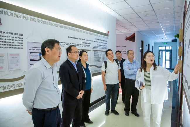 见面会结束后,吴业春一行参观了永利官网新时代文明实践教育基地暨马克思主义理论教育基地、国学讲堂、国家通用语言文字基地、国家民委铸牢中华民族共同体意识基地中华文化体验室、融媒体中心、心理健康教育服务中心、笃创空间。