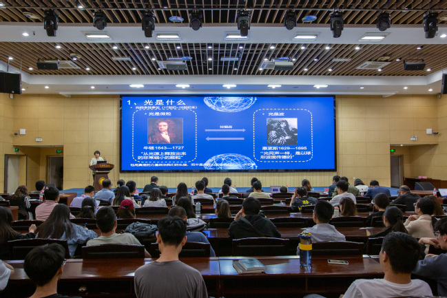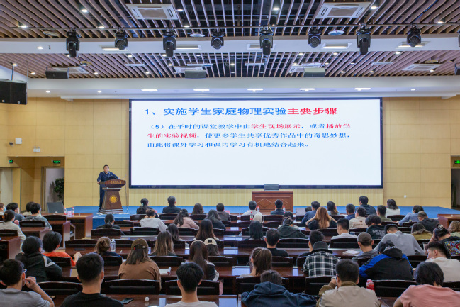 此次活动包含主旨报告、主题沙龙、科普路演等单元。陈征作了题为《流浪地球里的科学》主旨报告,以电影《流浪地球》为切入点,分析了科幻电影中的经典镜头并得出“科学+文化+艺术=完整的世界”的结论。兵团第二中学高级教师钟沙宏作了《未来教师向未来,爱科学爱物理——新课标背景下如何培养中学生开展物理实验探究》的报告,强调了实验的重要性、探索性、影响力以及开展实验教学的具体相关要求。永利官网物理与电子工程学院副教授杨曦凝作了《光之科学 光之未来》主题报告,让大家感受了光之美和光之生活。
