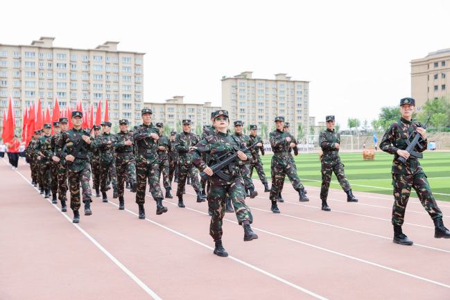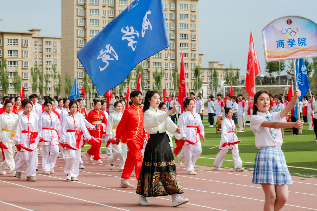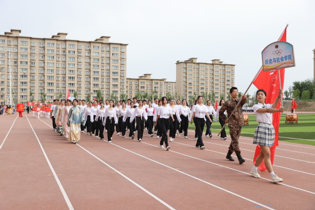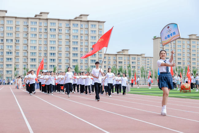 在激昂的音乐声中,国旗方队、退役军人方队、红旗方队、裁判员方队、研究生代表队和各学院代表队身着统一服装、迈着整齐步伐、高喊嘹亮口号通过主席台,接受在场师生的检阅,展现了青年大学生朝气蓬勃、昂扬向上、奋发有为的精神面貌,赢得了在场师生的阵阵掌声。