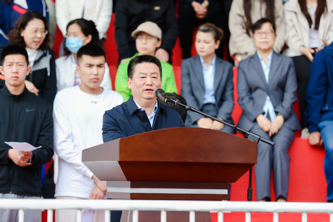 葛国强调,生命在于运动,运动中奔涌着青春的力量,青春的律动,青春的创造,希望同学们在运动中享受快乐、历练品质、学会尊重,以饱满的热情、昂扬的斗志、勇于拼搏的精神争取运动成绩与精神风貌的双丰收,让青春在新时代绽放,以“强国有我”的豪情壮志,在实现中华民族伟大复兴的接力跑中,不断刷新更好的成绩。