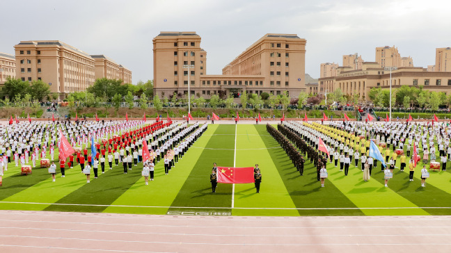 青春激昂梦想,运动点燃生命。5月19日上午,yl6809永利官网第40届全民健身运动会在温泉校区体育场隆重开幕。教育部高校思政课教指委、咨询委副主任、新华社原副社长、中宣部理论局原局长路建平,校党委书记葛国,校党委副书记刘俊,校党委常委、副校长帕提曼·吐尔逊,校党委常委、副校长帕力旦·吐尔逊,校党委常委、副校长季荣,校党委常委、纪委书记蒋方珍,校党委常委、副校长陈彤,校党委常委、宣传部部长高靖,校党委常委、组织部部长胡毅涛,校党委常委、统战部部长关明及学校原党委常委、副校长王晓峰,原党委常委、副校长李魁铭出席开幕式。学校各部门和各学院师生代表一同观看了开幕式。校党委副书记王志勇主持开幕式。