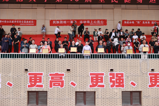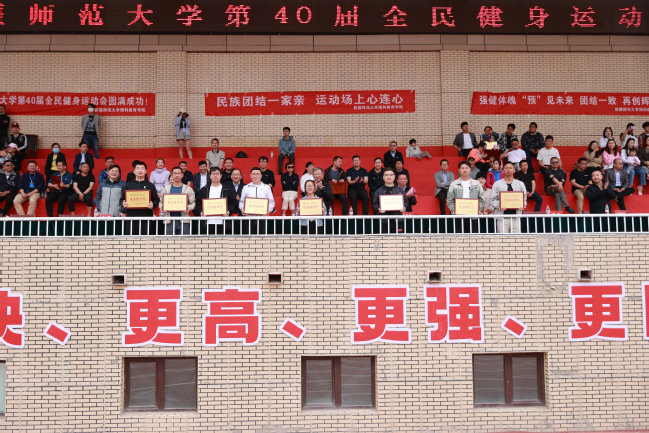 闭幕式上,本届运动会总裁判长鲍晓玲宣布了竞赛项目团体总分;本届运动会大众项目裁判长宁新辉宣布了大众项目团体总分;学生工作部(处)处长张进宣布了“优秀组织单位奖”获奖名单。