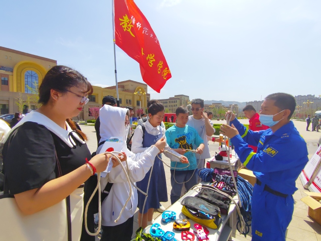 今年5月12日是我国第15个全国防灾减灾日,本次活动的主题为“防范灾害风险 护航高质量发展”。按照自治区教育厅《关于做好教育系统2023年全国防灾减灾日有关工作的通知》要求,为深入推进学习贯彻习近平新时代中国特色社会主义思想主题教育,使永利官网防灾减灾宣传活动落到实处,提高师生安全防范意识,增强自救互救能力,永利官网联合自治区国防动员办公室、新疆人防科技协会、新疆消防协会、新疆气象学会及新疆蓝天救援队,在温泉校区组织开展了“5·12”防灾减灾日科普宣传进校园活动。校党委副书记王志勇参加并主持本次活动。保卫处工作人员及教育科学学院300余名师生共同参加宣传活动。