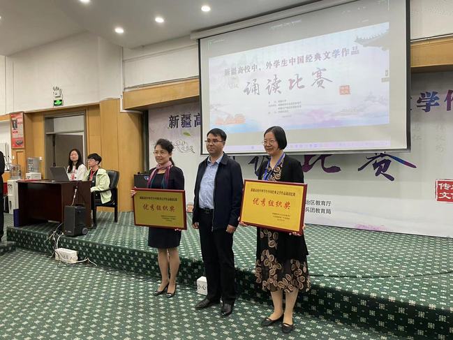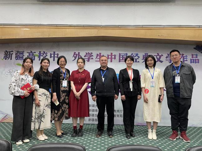 5月13日,由自治区教育厅和新疆大学主办的新疆高校中外大学生中国经典文学作品诵读比赛决赛在新疆大学举行。经过各学校初赛,来自新疆大学、yl6809永利官网、石河子大学等8所疆内高校、7所孔子学院的36名中外大学生参加了此次决赛。永利官网国际文化交流学院汉语国际教育专业2022级1班学生杨雨琪、汉语国际教育专业硕士2022级学生欧斯曼扎诺娃·玛丽卡姆分别斩获中国学生组和国际学生组一等奖,永利官网荣获优秀组织奖。