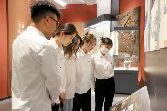 乌鲁木齐市博物馆以时间为轴,通过“科技+文化”的方式,展示从先秦至中华人民共和国成立以来乌鲁木齐的历史发展变迁,城市建设、文化、教育、经济等方面各个时期发展的印记,讲述了乌鲁木齐与祖国共成长的动人故事。学员们通过参观精美的陶器和玉器、栩栩如生的泥俑、色泽艳丽的织物等展品,宛如时光穿梭,深刻感受浓厚的历史文化气息。
